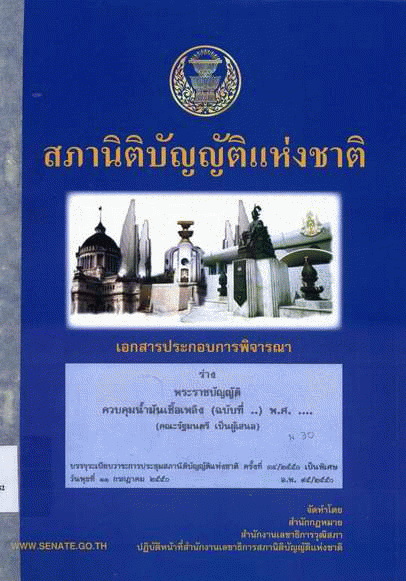 เอกสารประกอบการพิจารณาร่างพระราชบัญญัติควบคุมน้ำมันเชื้อเพลิง (ฉบับที่ ..) พ.ศ. .... (คณะรัฐมนตรี เป็นผู้เสนอ) บรรจุระเบียบวาระการประชุมสภานิติบัญญัติแห่งชาติ ครั้งที่ 34/2550 เป็นพิเศษ วันพุธที่ 11 กรกฎาคม 2550 อ.พ. 95/2550