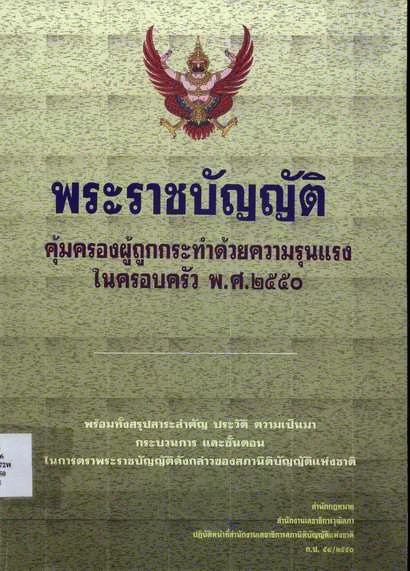 พระราชบัญญัติคุ้มครองผู้ถูกกระทำด้วยความรุนแรงในครอบครัว พ.ศ. 2550 พร้อมทั้งสรุปสาระสำคัญ ประวัติ ความเป็นมา กระบวนการ และขั้นตอนในการตราพระราชบัญญัติดังกล่าวของรัฐสภา.