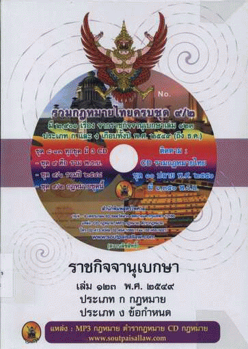 คู่มือการใช้งาน CD รวมกฎหมายไทย ชุดที่ 9/2 มี 2,900 เรื่อง จากราชกิจจานุเบกษา เล่ม 123 ประเภท ก และ ง เกือบทั้งปี พ.ศ. 2549 (ถึง ธ.ค.)