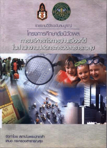 โครงการศึกษาดัชนีวัดผลการบริหารกิจการบ้านเมืองที่ดีในสำนักงานปลัดกระทรวงสาธารณสุข / สถาบันพระปกเกล้า.