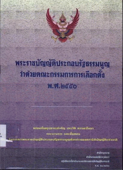 พระราชบัญญัติประกอบรัฐธรรมนูญว่าด้วยคณะกรรมการการเลือกตั้ง พ.ศ. 2550 พร้อมทั้งสรุปสาระสำคัญ ประวัติ ความเป็นมา กระบวนการ และขั้นตอนในการตราพระราชบัญญัติประกอบรัฐธรรมนูญดังกล่าวของสภานิติบัญญัติแห่งชาติ.
