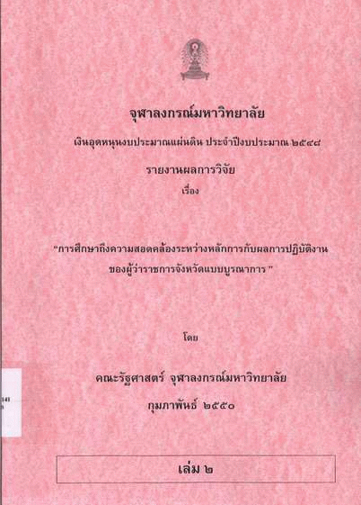 การศึกษาถึงความสอดคล้องระหว่างหลักการกับผลการปฏิบัติงานของผู้ว่าราชการจังหวัดแบบบูรณาการ เล่ม 2.