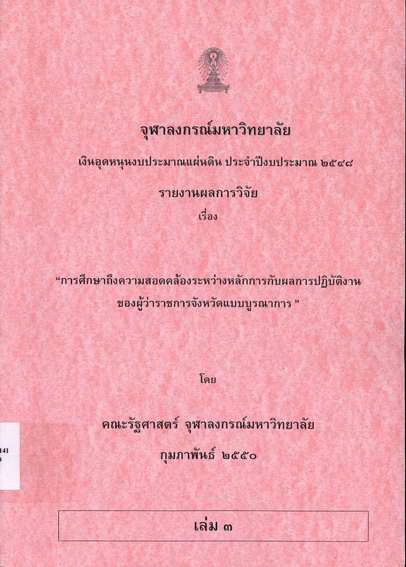 การศึกษาถึงความสอดคล้องระหว่างหลักการกับผลการปฏิบัติงานของผู้ว่าราชการจังหวัดแบบบูรณาการ เล่ม 3.