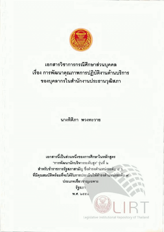 การพัฒนาคุณภาพการปฏิบัติงานด้านบริการของบุคลากรในสำนักงานประธานวุฒิสภา / ทิติภา พวงทะวาย
