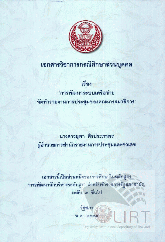 การพัฒนาระบบเครือข่ายจัดทำรายงานการประชุมของคณะกรรมาธิการ / ยุพา ศิรประภาพร