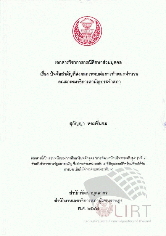 ปัจจัยสำคัญที่ส่งผลกระทบต่อการกำหนดจำนวนคณะกรรมาธิการสามัญประจำสภา / สุกัญญา หอมชื่นชม