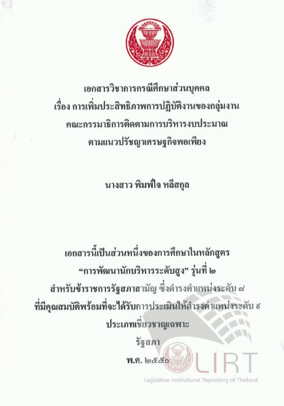 National Assembly Library of Thailand | Individual Studies collection | Individual Studies corner | IS 2/2550 7 (เรียกดูชั้นหนังสือ(เปิดด้านล่าง)) | พร้อมให้บริการ | 3961169492 |