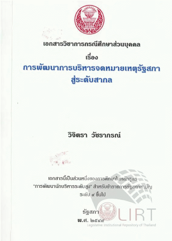 การพัฒนาการบริหารจดหมายเหตุรัฐสภาสู่ระดับสากล / วิจิตรา วัชราภรณ์