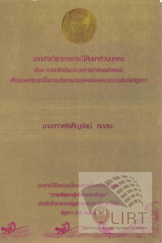 การปรับปรุงระบบการกำหนดตำแหน่งเพื่อมุ่งผลสัมฤทธิ์ในการบริหารงานบุคคลของหน่วยงานสังกัดรัฐสภา / ศศิเพ็ญรัตน์ พลสนะ