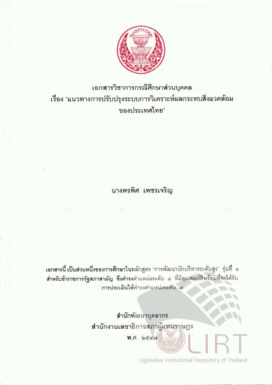 แนวทางการปรับปรุงระบบการวิเคราะห์ผลกระทบสิ่งแวดล้อมของประเทศไทย / พรพิศ เพชรเจริญ