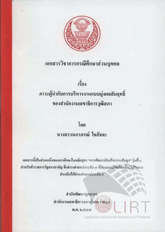 ภาวะผู้นำกับการบริหารงานแบบมุ่งผลสัมฤทธิ์ของสำนักงานเลขาธิการวุฒิสภา / นภาภรณ์ ใจสัจจะ