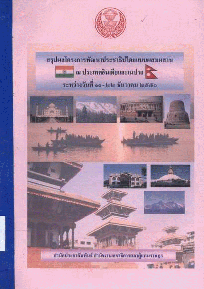 สรุปผลโครงการพัฒนาประชาธิปไตยแบบผสมผสาน ณ ประเทศอินเดียและเนปาล ระหว่างวันที่ 11-22 ธันวาคม 2550 / สำนักประชาสัมพันธ์ สำนักงานเลขาธิการสภาผู้แทนราษฎร.