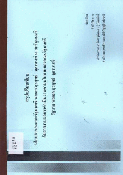National Assembly Library of Thailand | Parliamentary Publications Collection | Parliamentary Publications Shelves | สว 06 10.1 320.6 2550 (เรียกดูชั้นหนังสือ(เปิดด้านล่าง)) | พร้อมให้บริการ | 3961171670 |