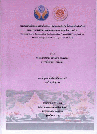 การบูรณาการข้อมูลงานวิจัยเกี่ยวกับการจัดการผลิตภัณฑ์หนึ่งตำบลหนึ่งผลิตภัณฑ์และการจัดการวิสาหกิจขนาดกลางและขนาดย่อมในประเทศไทย / วุฒิชาติ สุนทรสมัย, ศรีหทัย ใหม่มงคล.