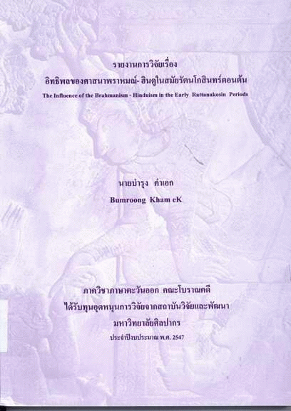 อิทธิพลของศาสนาพราหมณ์-ฮินดูในสมัยรัตนโกสินทร์ตอนต้น / บำรุง คำเอก