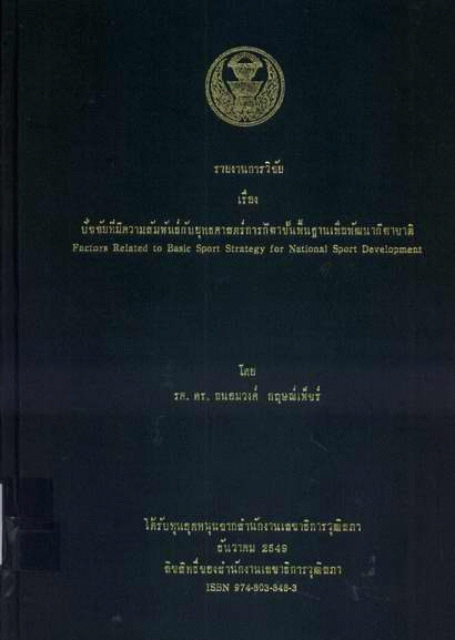 ปัจจัยที่มีความสัมพันธ์กับยุทธศาสตร์การกีฬาขั้นพื้นฐานเพื่อพัฒนากีฬาชาติ / ถนอมวงศ์ กฤษณ์เพ็ชร์.