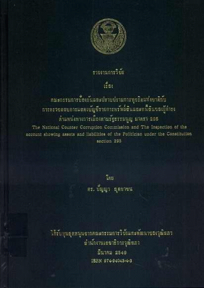 คณะกรรมการป้องกันและปราบปรามการทุจริตแห่งชาติกับการตรวจสอบการแสดงบัญชีรายการทรัพย์สินและหนี้สินของผู้ดำรงตำแหน่งทางการเมืองตามรัฐธรรมนูญ มาตรา 295 / ปัญญา อุดชาชน.