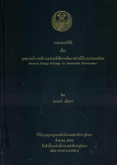 ยุทธศาสตร์การพลังงานแห่งชาติเพื่อการพัฒนาอย่างยั่งยืนของประเทศไทย / ยรรยงศ์ อัมพวา.