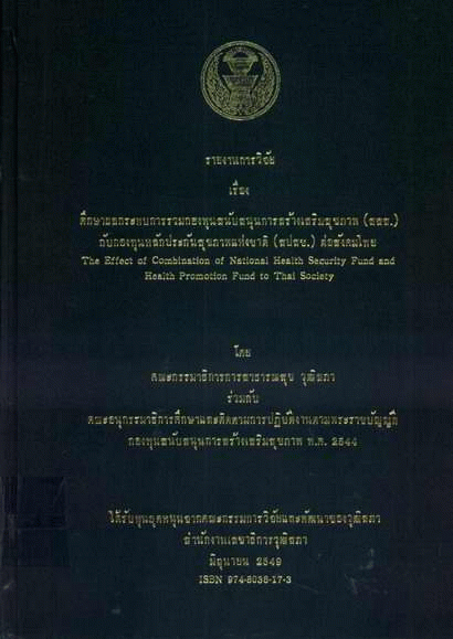 ศึกษาผลกระทบการรวมกองทุนสนับสนุนการสร้างเสริมสุขภาพ (สสส.) กับกองทุนหลักประกันสุขภาพแห่งชาติ (สปสช.) ต่อสังคมไทย / วิชัย สติมัย และคณะ