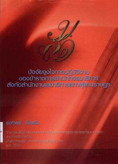 ปัจจัยจูงใจการปฏิบัติงานของข้าราชการสำนักกรรมาธิการ สังกัดสำนักงานเลขาธิการสภาผู้แทนราษฎร / รุ่งทิพย์ ยิ้มแย้ม