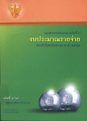 เอกสารงบประมาณ ฉบับที่ 3 งบประมาณรายจ่าย ประจำปีงบประมาณ พ.ศ. 2552 เล่มที่ 8 (4) กระทรวงศึกษาธิการ (4) / สำนักงบประมาณ.