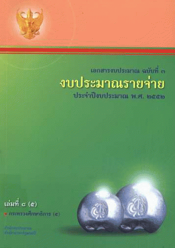 เอกสารงบประมาณ ฉบับที่ 3 งบประมาณรายจ่าย ประจำปีงบประมาณ พ.ศ. 2552 เล่มที่ 8 (5) กระทรวงศึกษาธิการ (5) / สำนักงบประมาณ.