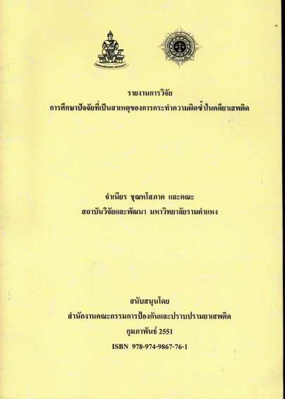 การศึกษาปัจจัยที่เป็นสาเหตุของการกระทำความผิดซ้ำในคดียาเสพติด / จำเนียร ชุณหโสภาค