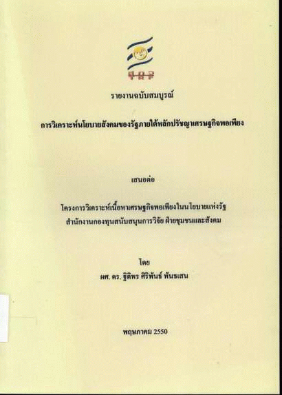 การวิเคราะห์นโยบายสังคมของรัฐภายใต้หลักปรัชญาเศรษฐกิจพอเพียง / ฐิติพร ศิริพันธ์ พันธเสน.