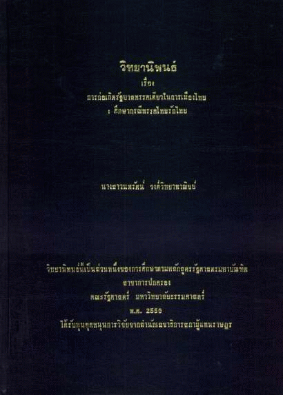 การก่อเกิดรัฐบาลพรรคเดียวในการเมืองไทย : ศึกษากรณีพรรคไทยรักไทย / นพรัตน์ วงศ์วิทยาพาณิชย์.