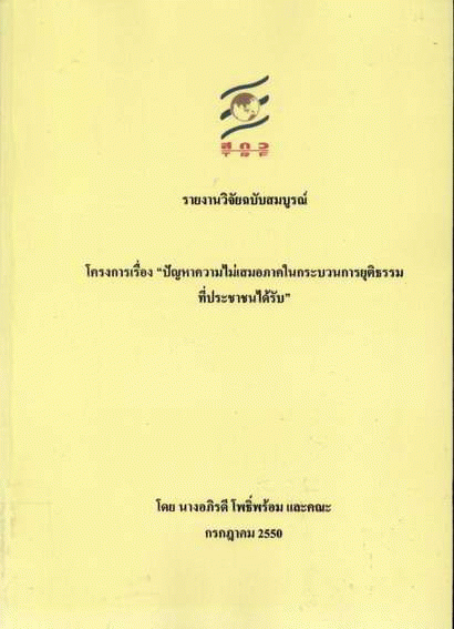ปัญหาความไม่เสมอภาคในกระบวนการยุติธรรมที่ประชาชนได้รับ / โดย อภิรดี โพธิ์พร้อม และคณะ.