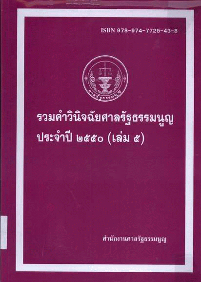 รวมคำวินิจฉัยศาลรัฐธรรมนูญ ประจำปี 2550 (เล่ม 5) / สำนักงานศาลรัฐธรรมนูญ.