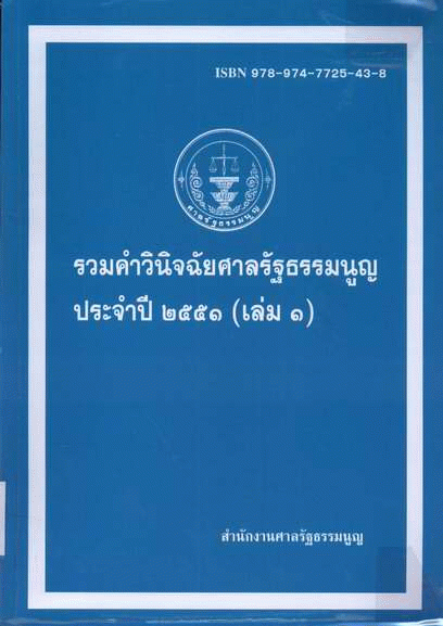 รวมคำวินิจฉัยศาลรัฐธรรมนูญ ประจำปี 2551 (เล่ม 1) / สำนักงานศาลรัฐธรรมนูญ.