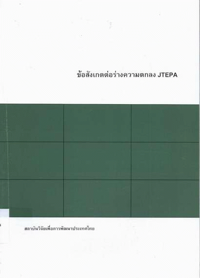 โครงการวิจัย "ข้อสังเกตต่อร่างความตกลง JTEPA" / โดย สถาบันวิจัยเพื่อการพัฒนาประเทศไทย.