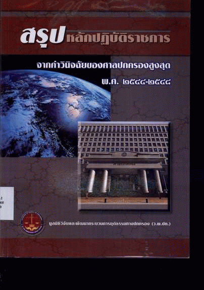 สรุปหลักปฏิบัติราชการจากคำวินิจฉัยของศาลปกครองสูงสุด พ.ศ. 2544-2548 / มูลนิธิวิจัยและพัฒนากระบวนการยุติธรรมทางปกครอง.