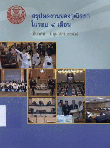 สรุปผลงานของวุฒิสภา ในรอบ 4 เดือน (มีนาคม - มิถุนายน 2551) / สำนักประชาสัมพันธ์ สำนักงานเลขาธิการวุฒิสภา.