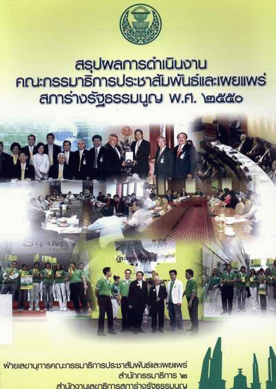 สรุปผลการดำเนินงานคณะกรรมาธิการประชาสัมพันธ์และเผยแพร่ สภาร่างรัฐธรรมนูญ พ.ศ.2550 / สำนักกรรมาธิการ 2 สำนักงานเลขาธิการสภาผู้แทนราษฎร.