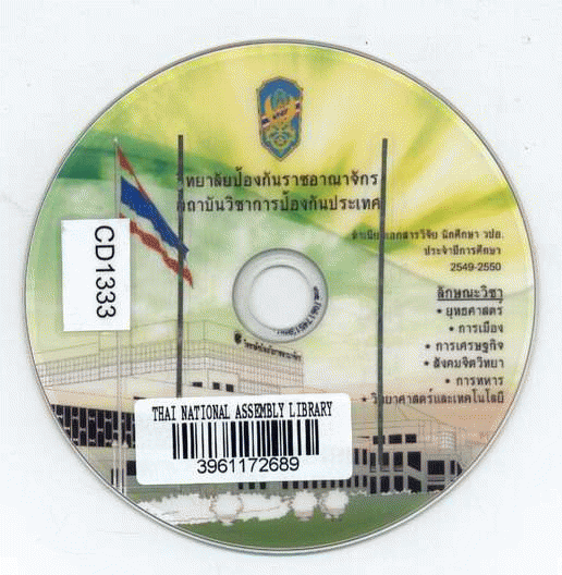 Computer fileLanguage: Thai Publisher: กรุงเทพฯ : วิทยาลัยป้องกันราชอาณาจักร, 2550Description: 1 แผ่น ; sd., colSubject(s):