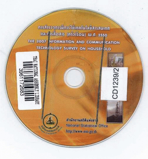 การสำรวจการมีการใช้เทคโนโลยีสารสนเทศและการสื่อสาร (ครัวเรือน) พ.ศ. 2550 [CD-ROM] : The 2007 information and communication technology survey on household