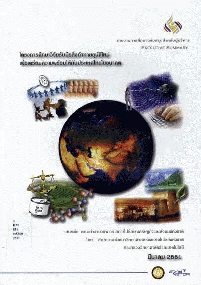 โครงการศึกษาวิจัยรับมือสิ่งท้าทายอุบัติใหม่เพื่อเตรียมความพร้อมให้กับประเทศไทยในอนาคต (รายงานการศึกษาฉบับสรุปสำหรับผู้บริหาร) / สำนักงานพัฒนาวิทยาศาสตร์และเทคโนโลยีแห่งชาติ.
