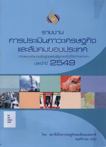 รายงานการประเมินภาวะเศรษฐกิจและสังคมของประเทศ ตามแนวนโยบายพื้นฐานแห่งรัฐตามตัวชี้วัดด้านต่างๆ ประจำปี 2549 / สำนักงานสภาที่ปรึกษาเศรษฐกิจและสังคมแห่งชาติ.