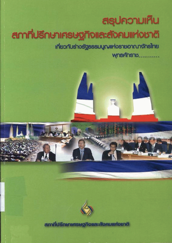 สรุปความเห็นสภาที่ปรึกษาเศรษฐกิจและสังคมแห่งชาติเกี่ยวกับร่างรัฐธรรมนูญแห่งราชอาณาจักรไทย พุทธศักราช..... / สำนักงานสภาที่ปรึกษาเศรษฐกิจและสังคมแห่งชาติ.
