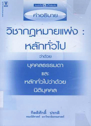 คำอธิบายวิชากฎหมายแพ่ง : หลักทั่วไปว่าด้วยบุคคลธรรมดาและหลักทั่วไปว่าด้วยนิติบุคคล / กิตติศักดิ์ ปรกติ.