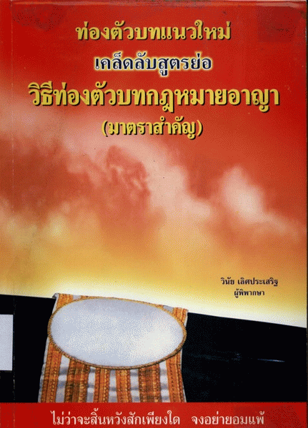 ท่องตัวบทแนวใหม่ เคล็ดลับสูตรย่อ วิธีท่องตัวบทกฎหมายอาญา (มาตราสำคัญ) / วินัย เลิศประเสริฐ.