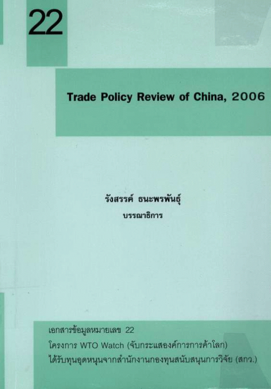 Trade policy review of China, 2006 / รังสรรค์ ธนะพรพันธุ์ บรรณาธิการ.