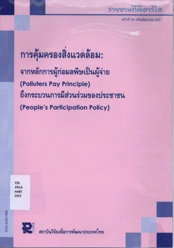 การคุ้มครองสิ่งแวดล้อม : จากหลักการผู้ก่อมลพิษเป็นผู้จ่าย (Polluters pay principle) ถึงกระบวนการมีส่วนร่วมของประชาชน (People's participation policy).