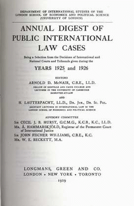 Annual digest of public international law cases years 1925 and 1926 (International Law reports Volume 3) / editors Arnold D. McNair and H. Lauterpacht.