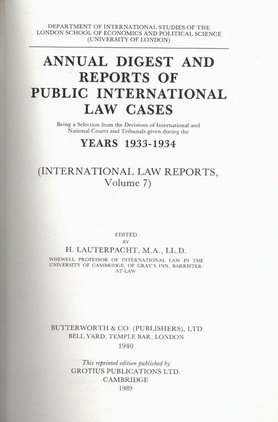 Annual digest and reports of public international law cases years 1933-1934 (International Law reports Volume 7) / edited by H. Lauterpacht.