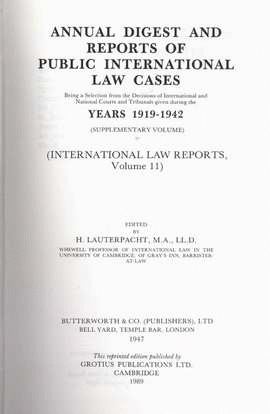 Annual digest and reports of public International law cases years 1919-1942 (International law reports, volume 11) / edited by H. Lauterpacht.