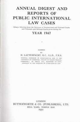 Annual digest and reports of public international law cases year 1947 volume 14 / edited by H. Lauterpacht.