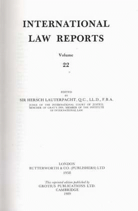 International law reports Volume 22 / edited by Sir Hersch Lauterpacht.